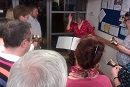 SATURDAY 15TH: Brian and Susan Read had a trouble free train journey and two cars and a minibus set off about 9.00 intending to catch the 1.55 Dover-Calais ferry. By 12.00 we were all ahead of schedule on the outskirts of Dover when disaster in the shape of a huge traffic jam struck. Dover port had been closed all night due to bad weather so they tried to clear the backlog by cramming hundreds of people and vehicles onto one enormous ship. This took time and we finally left Dover at about 7.30 pm. Brian and Susan had no worries at all but the rest of us finally got to SN, exhausted at about 12.30. SUNDAY 16TH: Most of us were at the SteM, Zwijgershoek cultural history museum at 11.00 for a guided tour of the museum followed by a guided tour of the town. I had offered to pick up Nikki, Gloria and the Queralts in the van to save them the bother of the ten minute walk from the hotel to the museum. Half an hour later we were miles away and totally lost so we returned to the hotel, parked the van and walked, arriving nearly an hour late. It was a great tour and gave us an insight into Belgian history and the tension between the two linguistic groups. At dinner that evening Herman Cole turned up with his singers, persuaded the waiting staff to have a break and sang several anti-war songs. We, that is the Abingdon tone deaf society, then sang our two hastily put together songs before Herman's group finished off with four more including 'Where have all the flowers gone' in homage to Pete Seeger. It was a great evening.