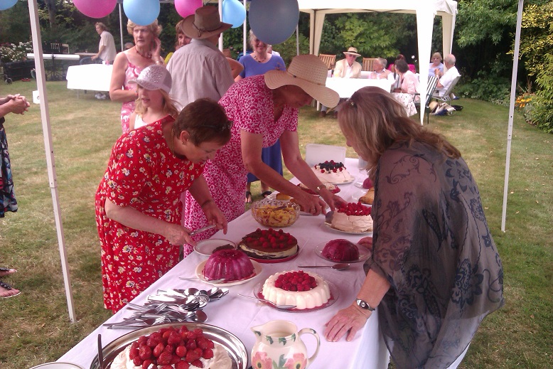 Blessed with truly pleasant weather the Society enjoyed a most congenial summer lunch party hosted by John and Ann Prior in their delightful garden. The success of the event was due in very large part to the efficient organisation and planning which had taken place beforehand and ensuring that everyone had a shady spot in which to sit. The buffet table was filled with beautifully presented food and the hard work and culinary skills of the catering committee were very much in evidence (diets have already started!). We were entertained with some delightful background music throughout the afternoon by Ian Miles which enhanced the relaxing atmosphere. The raffle was organised by Brian Read and members had been generous with their donation of prizes. It was noticeable that everyone had enjoyed a wonderful social afternoon and a big THANK YOU to those members who made it happen. Gwyneth Goss Bastille Day Trip to Normandy11 - 15 July 2014 Friday 11th Fourteen of us travelled by car and bicycle meeting up at Argentan Mairie at 6.00 pm. Guests staying at the hotel had dinner there and everyone else had dinner with their hosts. Saturday 12th We met up with the Dickenses and Maria Cuguen at the Mairie at 10.30 and drove to Chambois where we were greeted by Gerard, our guide. Upstairs in the Office de Tourisme he gave us a talk about the Battle of Normandy which was quite heavy going for the poor interpreter, me! We found the historical background interesting but we were more fascinated by Gerard’s personal anecdotes about the time because he was there, a fifteen year old half starved and terrified boy. After the talk we were given the use of a local primary school for our picnic, Maria left us and the Sillieres arrived to look after us. After lunch we went to the Moissy ford where 10,000 Germans and thousands of horses lost their lives trying to escape the 'Falaise Pocket'. After that we went to Montormel where there is a visitors’ centre and memorial to the Battle of Normandy. I have been there a few times and always learn something new about this second 'Stalingrad'. After that we had free time and most of us returned to Argentan and had dinner either with our hosts or at the hotel. Sunday 13th Guy Frenehard and the Dickenses came with us to Arromanches for a visit to the D-day museum followed by a picnic at the Longues artillery emplacements and a visit to Colleville American cemetery overlooking Omaha beach. Monday 14th Bastille Day At 11.30 we joined the parade, walking to the war memorial and then on to the 'Patures' where there were speeches and aperitifs. Most of us then picnicked in the 'Pature', a large meadow, where there were various activities going on all afternoon including live bands, snacks bars, clown, games and canoeing. Everyone did their own thing until 8.00 pm when we met up at the Donjon restaurant for dinner laid on by Argentan twinning society. We had speeches and a great meal followed by fireworks back at the 'Pature' at about 11.00. I am told that they have a 'bal populaire' (open air disco) until the early hours but I do not think any of us stayed up for that. Tuesday 15th We all went our different ways. I enjoyed it very much and I hope the others did too. Richard Smart