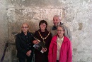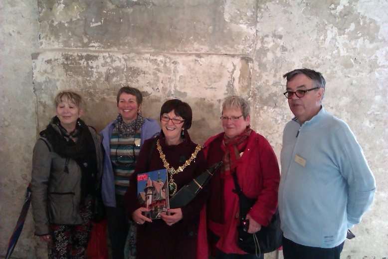 Twinning welcomed Alix Booth who has worked with Mr Punch for over thirty years taking him from cottages to stately homes, from churches to cathedrals, schools, history societies and even abroad. Her interest in the history of Punch & Judy has continued throughout this time and, during her talk, she was able to introduce and explain the background of the individual puppets from her Puppet Cabaret and give us a short demonstration of the type of performance the puppet would contribute to the show. This included light political satire, which Alix is forever updating - her most recent puppet being the character of Alex Salmond! Punch represents the common man fighting his small battles with life and the characters in the traditional show are just the ones that would have beset him from 1760-1830 when the story, as we know it today, was developed. Alix also talked about the equivalent type of show available at that time in Europe. The talk, which is given through the puppets, includes Samuel Pepys who first recorded seeing Pulcinella in 1662! We were well entertained throughout the hour with all the visual and aural stimulation that kept the audience highly amused. We met the Hangman and Beadle as well as Queen Victoria! Alix later answered questions related to her trips to Kensington Palace where she entertained the royal children and how she obtained the puppets and their upkeep. A most enjoyable evening was completed with complimentary (and complementary) refreshments - what else but sausages, ice cream cornets and a whacky punch to drink! Thanks to the committee for making the evening so memorable. Gloria Tolputt Visit from Lucca6 - 11 November 2014 ADTTS hosted visitors from Lucca to Abingdon. They arrived on Thursday 6th November for a full programme of activities before leaving on Tuesday 11th November. The visit was arranged to include the Remembrance Day commemorations. After being welcomed on the Sunday to the Civic Service in St Helen's church, the party proceeded to the ceremony in The Square where Maria Curto from Lucca, representing our twin towns, together with Stella Carter for ADTTS, laid wreaths at the war memorial.