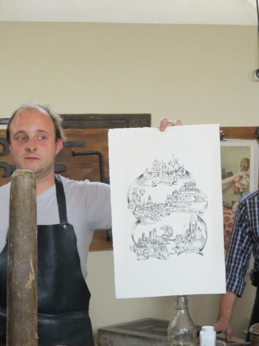 I have recently returned from the most wonderful French Language Course in Colmar, organised by Les Amis du Jumelage de Colmar from 17th - 24th May. It was my first twinning trip and I was overwhelmed by the generosity of our hosts, the richness of the programme we were offered and the quiet efficiency with which it was all organised for us. There were 11 guests: 4 from Abingdon; 2 from Sint-Niklaas; and 5 from Schongau. After the first evening with our hosts we spent Sunday at a local nature park owned by the Natala des Amis de la Nature, a longstanding organisation which promotes access to the countryside as a positive leisure activity. We were treated to a delicious meal, with a Brass band concert and a guided walk around the park. The weather was lovely and we had the opportunity to meet all the Colmar people involved in twinning. On Monday morning we started our French course which ran from 8.30 am to 12.30 pm, with a short break for coffee and croissants! We had been given tests beforehand to assess which level of teaching would be best for us. There were two groups. We were allocated to one of these beforehand but we were given the option to change if we wished. The teaching was all oral and in French throughout. It was very challenging but very stimulating and helpful. There was a good mixture of approaches, including grammar, and there was a lot of laughter! We then went to lunch in a local restaurant which was delicious. Afterwards we were taken on a fascinating tour of the centre of the town following the theme of “The Signs”. This was in keeping with the theme of the whole week which was the craftsmen of Colmar and surrounding area. Colmar is the most beautiful town whose architectural history, going back to medieval times, is almost intact. The very attractive and distinctive signs are hung outside the workshops of the craftsmen and retailers of the town. After the tour we were kindly received in the Town Hall by the Mayor and councillors. The next four days followed the same pattern namely, the French lesson in the morning and a visit to one or two local craft workshops in the afternoon. On Tuesday we visited a master copper engraver who showed us how he prepared and printed the engravings. Afterwards we visited a really inspiring project "p’tit Baz’art" run by the Assocation Espoir whose aim is to help people in social difficulty, including offenders, to reintegrate into society. They were creating an amazing variety of products for sale from recycled materials. On Wednesday the craft visit was to a lithographer, followed by a trip to Ribeauville to see an exhibition and to hear the history of the town’s noble family. The day ended with a meal at a local restaurant to sample the local speciality “tarte flambée”. On the Thursday after lunch we had the choice to see either a sculptor in stone or in wood, after which we were free to go to the Colmar museums or go shopping in the town. My host kindly took me to the Dominican Church to see two of the masterpieces of Western Art: the Issenheim Altarpiece (with painted panels by Grunewald and sculptures by Nicolas de Haguenau); also La Vierge au Buisson de Roses, a painting by Martin de Schongauer. Later my host took me to Eguisheim, a delightful village (winner of the best village in France competition) not far from Colmar, where we saw a stork sanctuary and I was delighted to see some storks. Our craft visits on Friday afternoon were fascinating. The first was to a weaver of furnishing textiles of traditional Alsatian design, where we saw a film of the traditional and modern weaving process followed by a look round the shop full of their beautiful current products. Our last visit was to a weather vane maker whose designs, traditional and modern, were very tempting. On some free evenings some hosts invited other guests and hosts to their homes for dinner which was great fun. On Friday evening we were treated by the twinning hosts and the Colmar twinning Committee to a wonderful dinner at a local chalet in the hills with music and dancing, where we had the speeches and were given our certificates for the French course. All in all a most memorable experience: making new friendships, renewing old ones; improving our French; and learning about the rich cultural, artistic and historical heritage of Colmar and its environs. What a privilege! A huge thank you to all those in Colmar twinning who gave so much time and commitment to making our visit such a success. Jill Gant I was not sure what to expect when we arrived in Basel, we were welcomed by our host in a few words of English. From then on French was the order of the week. Travelling for about 45 minutes to Colmar and sitting in the back, I could hear John starting to practise his French as I looked around the countryside. As the only French course I have ever completed was when I was 16 and as our main holidays are now in New Zealand (to see the grandchildren) rather than in mainland Europe, my recent French verbal practice has been limited. Our hosts treated us to Choucroute. They were surprised to discover it was one of John’s favourite meals. The course consists of teaching in the morning followed by themed visits in the afternoon. After the 4 hour session (all in French) starting at 8.30am with a short coffee and croissant break where students from the other class joined us, we students plus one or more twinning society members went to lunch at a local restaurant. At that meal, I spoke one of three languages, English, German or French depending on to whom I spoke. After lunch we were escorted by twinning society members to the visits where explanations were given in French. Dinner was at our hosts or another member of the twinning society except on Wednesday when we went to the pretty village of Bergheim and had a great experience of various courses of “tarte flambée” (starting with a fromage blanc (white cheese) tarte flambée and finishing with an appl