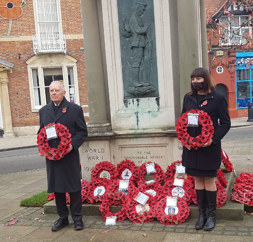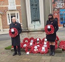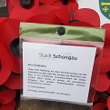 Earlier, the ADTTS Chairman, Stella Carter, laid the wreath on behalf of the Society and our twin towns. This year we were unable to invite as usual a representative from one of our twins to lay a wreath. Instead, the Vice-Chairman, Brian Read, laid a wreath on behalf of Schongau, whose turn it was. The inscription that Schongau sent for their wreath translates as
