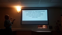 Whilst Richard, as expected, provided an amusing refrain of anecdotes to accompany Anne's talk, not least of which were the Richard look-alike face mask and the mental image of Richard riding a six-year-old's mini-bike in the park to try to encourage the pair to start learning to ride a bike. There was a moving serious side to the relating of many of these experiences as we the audience came to realise the nature of the psychological condition of some such children, for example their unwillingness to try anything unfamiliar, or their wariness in forming relationships with others, be it adults or children. Just as interesting were Anne's revelations of all the steps of the long process she and Richard had to pass through before being accepted as personal carers, it s clearly a demanding process. It was however easy and revealing for us as an audience to link all the many kinds of questions and procedures Anne and Richard had to face with the over-riding necessity of the protection of children who were going to be fostered, especially when Anne explained the necessity for fosterers to replicate as far as possible the social, ethnic, and sometimes religious environment of the children's home life with their parents to whom it is hoped they might eventually return. Those of us who know and love Richard as we all do were surely the most amused by Richard's telling of the main question in the online questionnaire about himself to which he was told he gave the most WRONG answer: When playing games with children, what is your attitude to letting them win? A short discussion followed. I say no more. It was a measure of Anne and Richard's warm personality and our members' involvement with the narrative that questions and responses from the audience relating to their own comparative experiences of fostering and bringing up children came naturally throughout the talk rather than at the end, which gave the evening a very natural and easy flow. Leaflets on fostering in Oxfordshire were available for anyone wanting to follow up. Informal discussions continued over refreshments prepared by Nikki.