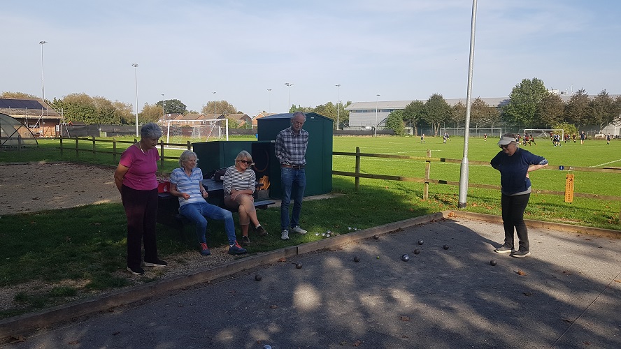 On offer were, cheat, bidding whist, Scrabble, en Francaise, Happy families, ditto and Spoons. I had never come across the latter before and in a way – a very remote way - it reminded of Musical Chairs. Although played with cards, the principle was the same. When the first person had collected four cards of a kind, he or she grabbed a spoon. The other three players then competed for the two remaining spoons. The one who missed out received the first letter, P in this case, against their name. You get the idea. When one player had accumulated POUTINE, the game was over. You then either moved onto the next offering – say Happy Families or went to get another drink to calm your nerves. I lost at Spoons, chatted over Happy Families, as there were only two players and tried to shine at Scrabble. Alas my attempted rendition of English words with an added e on the end (wax and waxe for example) did not meet the requirements of the French dictionary, fortunately at hand to settle any disputes. My final score, allowing for the fact that I had a collection of ws, xs and js, was -9. All this intellectual effort was helped by a glass of wine and at the end complemented with slices of baguette (or the British version thereof) covered with soft cheese, or pâté, including the mushroom, vegetarian, variety, to restore our energy levels – they say the brain requires a lot of calories to function properly. Our thanks to Richard for organising the evening and providing the games, Nick for tending the bar and Nicky and Susan for providing the refreshments. Neil Hancox 22 October 2023 Pétanque Taster SessionMonday 9 October 2023 - at Wallingford Pétanque Club, Hithercroft